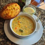 So why is it called Broccoli Cheese Soup with Cornbread Muffin? Is it because of the cheesy goodness that brings happiness in a bowl? Or perhaps because cornbread is simply the best bromance partner for soup? It has a nice ring to it, doesn’t it? After all, they say, “the way to a man’s heart is through his stomach,” and this dish certainly aims to please! Imagine a cold evening where a steamy bowl of this soup warms you from the inside out, and a fluffy cornbread muffin is just waiting to be slathered in butter. Why not grab a spoon and dig in, huh?