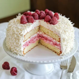 This Coconut Cake with Raspberry Buttercream Filling is not just a feast for the palate; it’s also simple and delicious! With a preparation time of about 30 minutes and bake time of 30 minutes, you can quickly whip up a stunning dessert that will impress your family and friends. The creamy texture of the cake combined with the explosive flavors of raspberries makes it a satisfying choice for any occasion!