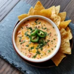 A creamy and cheesy dip that blends cottage cheese with traditional queso flavors, perfect for gatherings and game days.