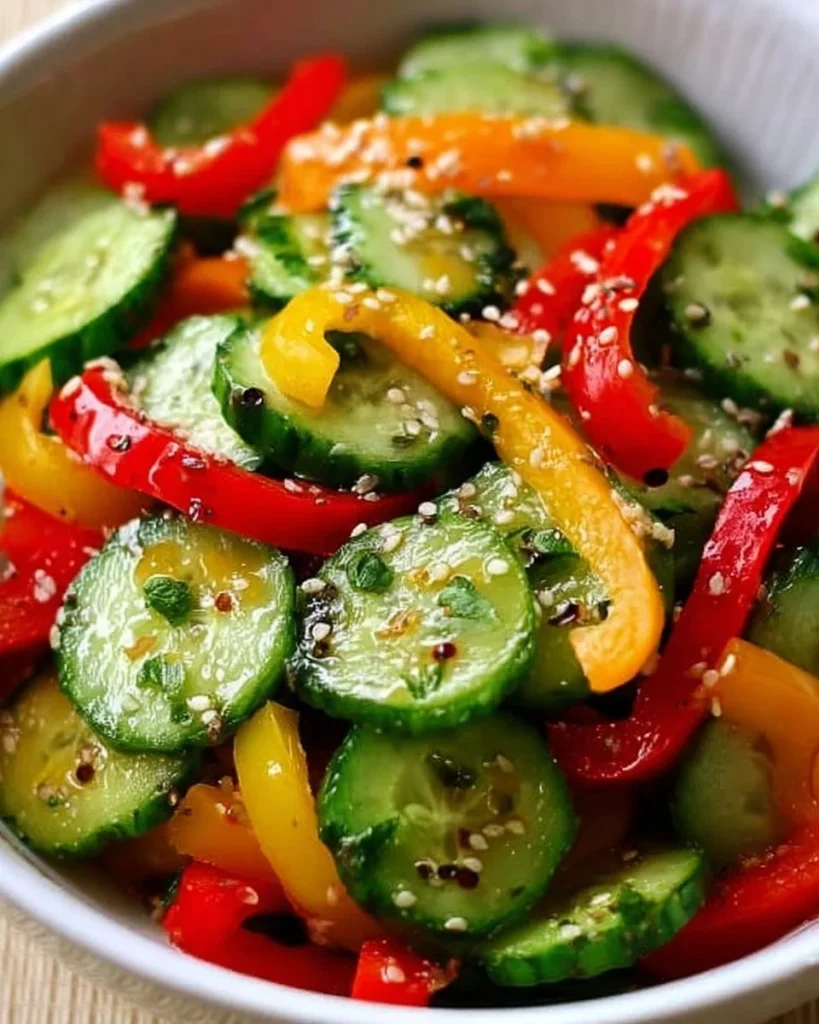 A vibrant and refreshing salad featuring crunchy cucumbers and sweet bell peppers, perfect for any gathering.