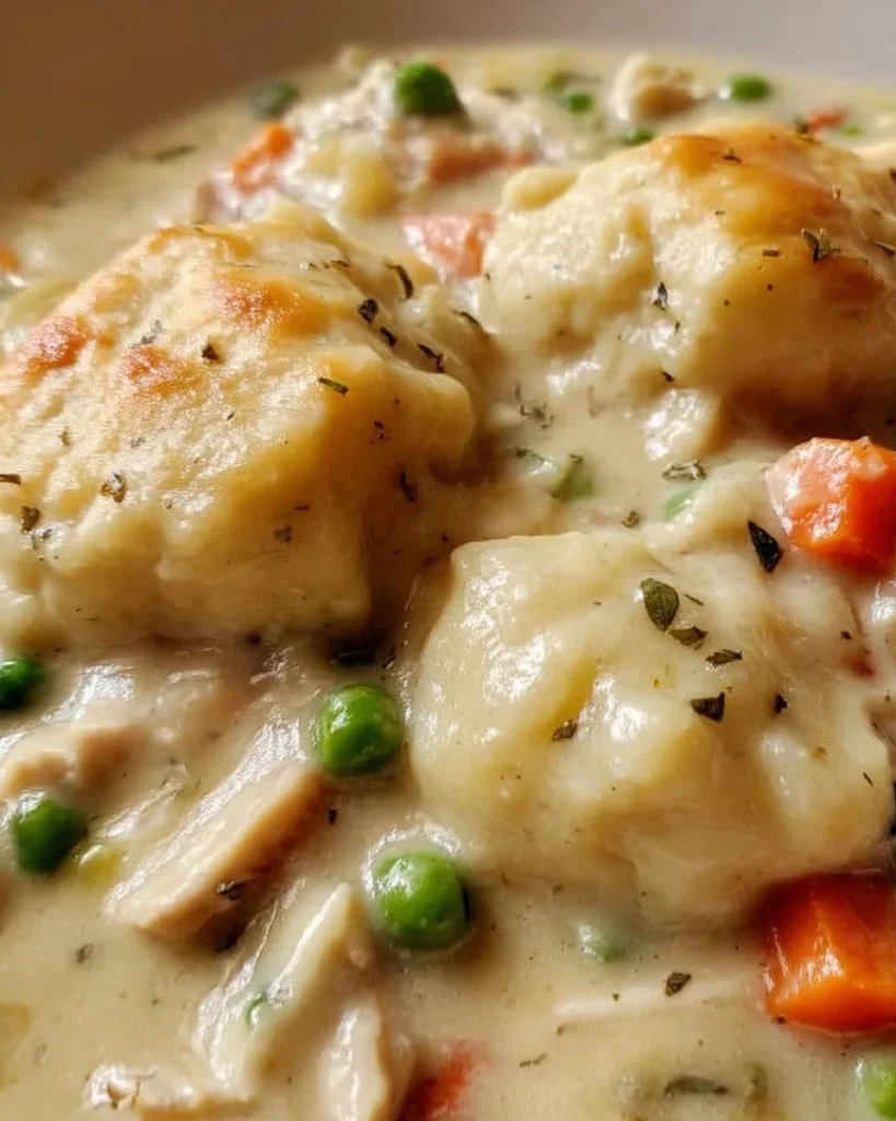 5. Serve and Garnish: Ladle the chicken and dumplings into bowls, garnish with fresh herbs, and enjoy!
