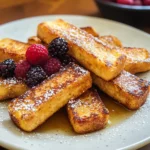 Delicious and crispy French Toast Sticks, perfect for breakfast and easy to dip in syrup!
