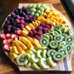 This fruit board is a celebration of taste and creativity, making it both a joy to prepare and eat! The main highlight of this dish is its stunning visual appeal, with an array of colorful fruits that not only look good but taste great too. What’s even better? It allows you to get creative without breaking the bank – you can mix and match seasonal fruits and use whatever you have at home. Plus, it’s entirely customizable: add honey, yogurt dips, or even edible flowers for that extra touch of elegance. If you love engaging recipes like our homemade granola, you’ll be thrilled with how fun and satisfying making a fruit board can be. So why not bring a little life to your next brunch and treat yourself and your friends to a fruity feast?