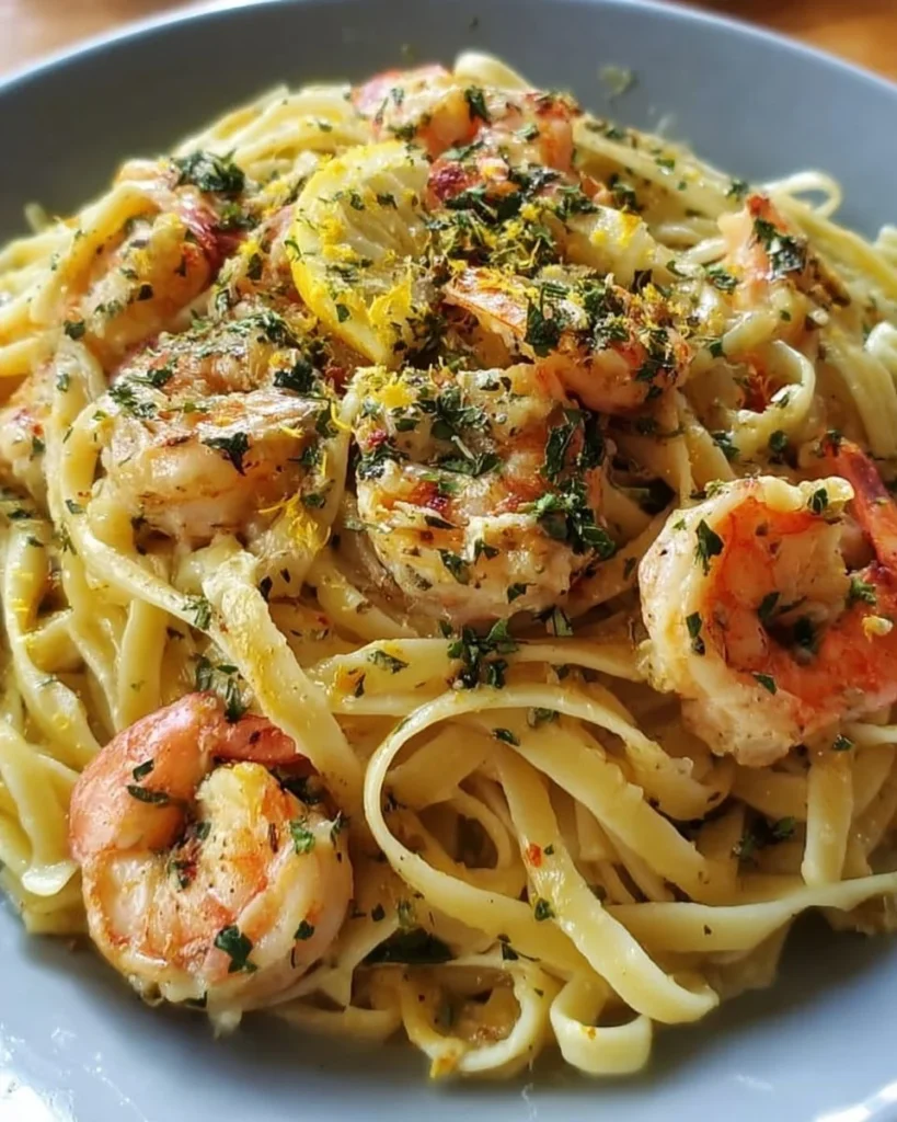 A quick and delicious pasta dish featuring succulent shrimp in a zesty lemon sauce, perfect for weeknight dinners.