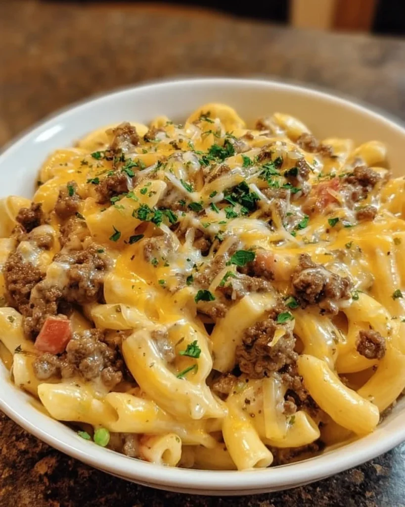 A comforting blend of cheeseburger and creamy Alfredo pasta, this dish is perfect for family gatherings and quick weeknight dinners.