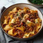 So, what’s in a name? Pappardelle Bolognese sounds fancy, but it’s simply a love letter to Italian cooking! The term “pappardelle” derives from the Italian word “pappare,” meaning “to gobble up,” which perfectly describes what will happen when you serve this dish at your dinner table! But seriously, who could resist those wide, ribbon-like noodles drenched in a velvety sauce? It’s like each bite is a celebration of flavors. And let’s be honest, isn’t it true what they say: “the way to a man’s heart is through his stomach”? Pappardelle Bolognese is sure to win over anyone—so why not try making it at home?