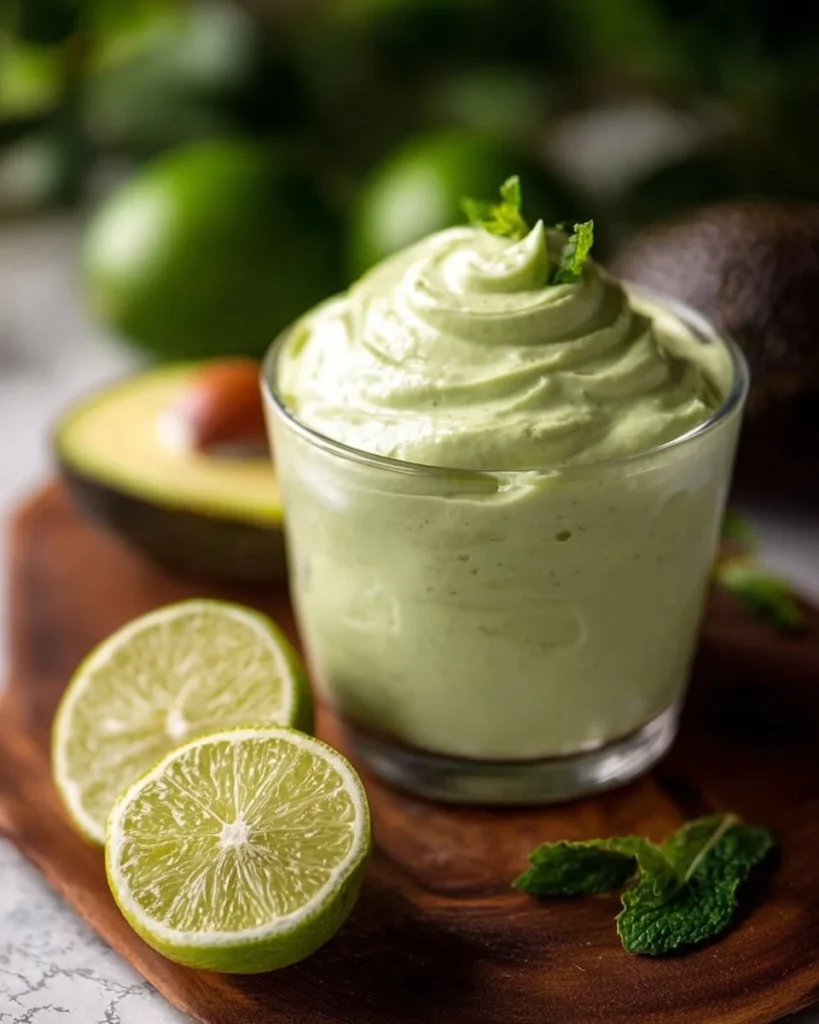 A creamy and zesty dessert featuring ripe avocados blended into a smooth mousse with fresh lime.