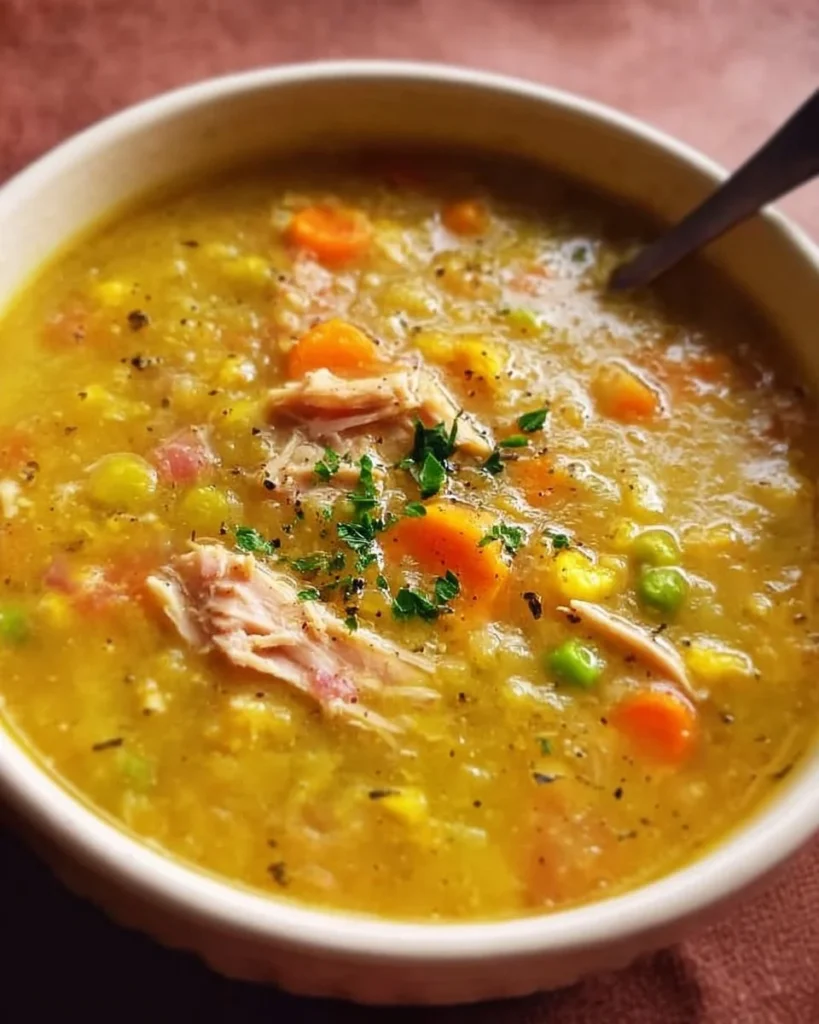 A comforting and hearty soup made with split peas and chicken, perfect for chilly evenings.