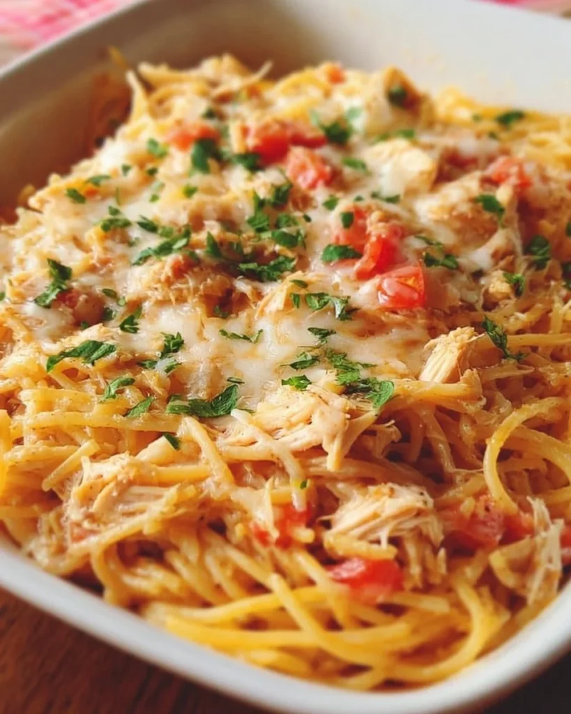 The Perfect Chicken Spaghetti stands tall as a meal that effortlessly transforms dinner into an occasion. Firstly, it’s the main highlight, featuring tender chunks of chicken enveloped in a creamy sauce that clings to each strand of spaghetti. It’s a dish that offers all the comfort of homemade food, right at your fingertips! Secondly, not only is it delicious, but it’s also cost-effective, making it easier to whip up at home rather than relying on takeout favorites. Plus, let’s not forget the flavorful toppings! Think fresh herbs or a sprinkle of cheese that can elevate your simple meal to a feast! Compared to a classic mac and cheese, The Perfect Chicken Spaghetti brings a satisfying twist that’ll make your taste buds dance. Ready to give it a try?